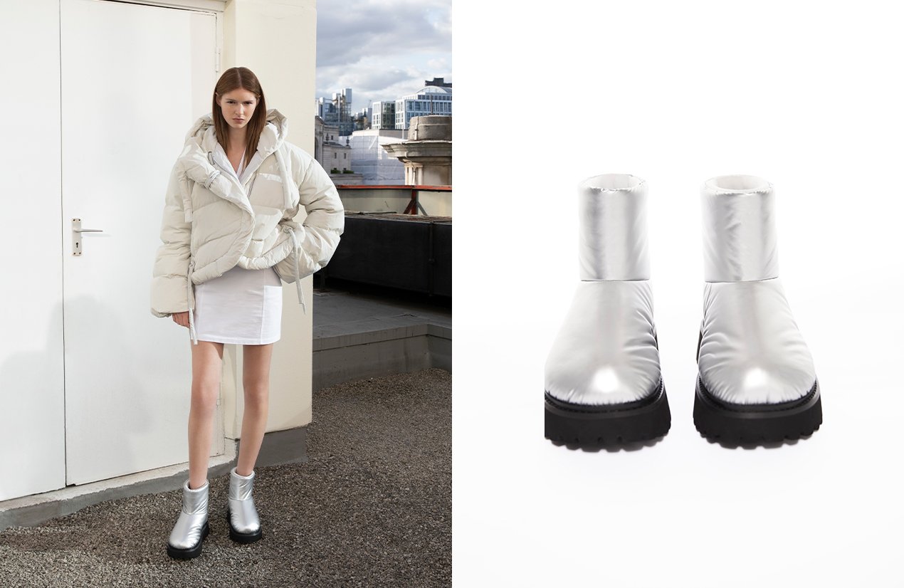 Practical, versatile and comfortable, this pillowy silhouette is the most sensible and covetable style for the winter months, when there is a strong desire to cosy up. Taking inspiration from the softness and bulkiness of winter gears, this season’s accessories feature eye-catching puffy exteriors that are a delight to hold and behold. Our Romilly puffy ankle boots in silver — which look like snow boots you would wear on the moon — gives an air of fun and has the power to make any outfit more playful.
