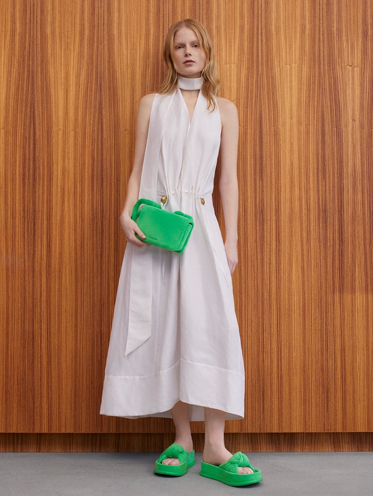 Thêm điểm nhấn rực rỡ cho bộ trang phục màu đen với những món đồ như dép quai ngang Loey màu xanh lá cây và túi xô Petra màu hồng, đón chờ những ngày có tiết trời tuyệt vời và tinh thần của bạn cũng phấn chấn như vậy. Những chiếc túi Loey trong bộ sưu tập là hình ảnh thu nhỏ của sự tương phản, nổi bật với các đường nét sắc cạnh và kết cấu giống như chiếc khăn mềm giúp cân bằng thiết kế hình hộp của chúng. Việc kết hợp phụ kiện này với quần ống loe bồng bềnh hoặc một chiếc váy xếp li thanh lịch sẽ tạo thêm một sự tương phản khác, cho vẻ ngoài hàng ngày của bạn trở nên thời thượng, thu hút.