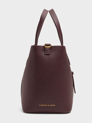 Beryl Recycled Leather Double-Handle Belted Bucket Bag - Wineberry Red