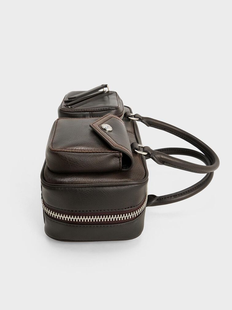 The bowling bag is a classic style that blends style with functionality. This Thora version in edgy burnished brown comes with two external pockets and an inner compartment to keep your belongings organised and easily accessible -- no more rummaging required. Carry it by its top handles or clip on the accompanying adjustable strap to go hands-free when you want to. It also come with a keychain that doubles as a bag charm.