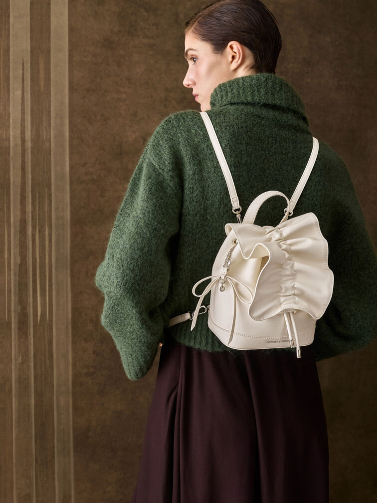 Kadee Ruched Bow-Charm Backpack - Cream
