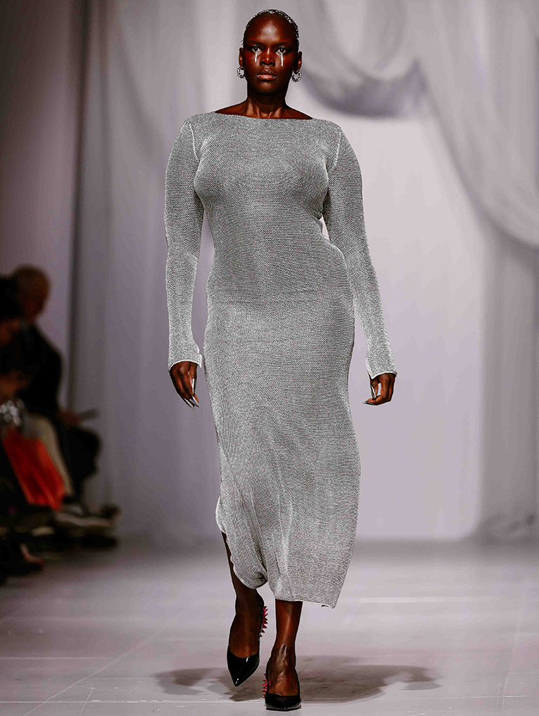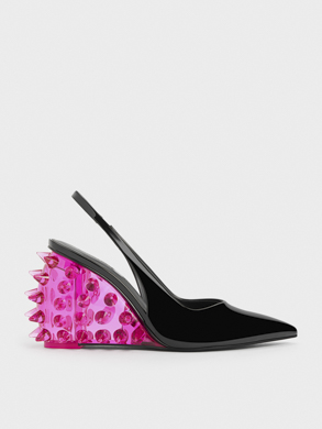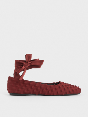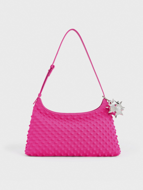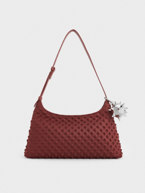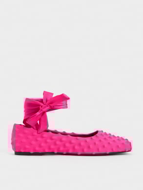 At London Fashion Week, Asian-American designer Chet Lo featured pieces from his collaborative collection with CHARLES & KEITH on the runway. His signature knitted spikes made an appearance in the form of visually arresting red separates, which he paired with the spike textured shoulder bag and patent spike-heel slingback wedges in matching hues. In another look, the spike textured tie-around ballet flats gave a slinky hooded two-piece set characteristic boldness, while its tie-around silhouette infused sophisticated allure into the ensemble.
