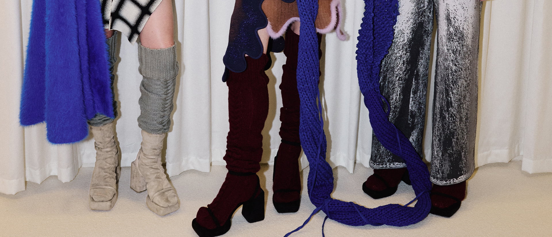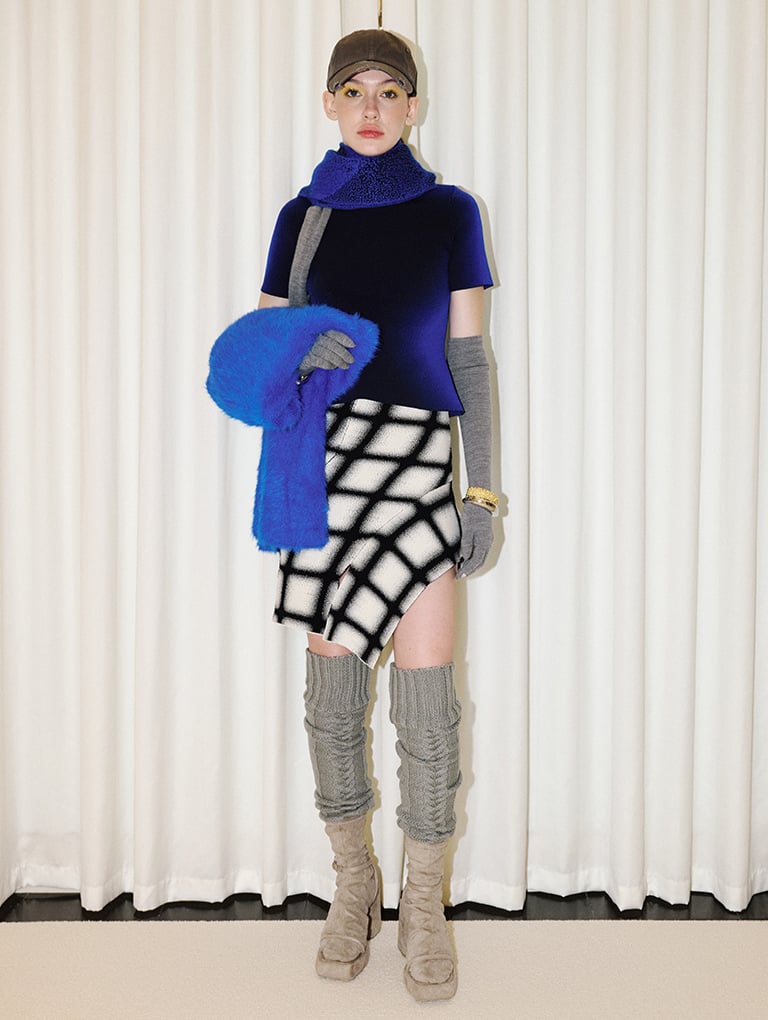 The removable sock feature on the Lucile textured platform calf boots mimics the appearance of wearing socks with strappy sandals, which gives this ski-wear inspired PH5 look a contemporary touch. These more-than-meets-the-eye boots complement the border gradient design from the New York-based knitwear brand — both experiment with optical illusions to create striking takes on feminine silhouettes.