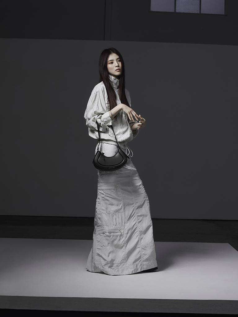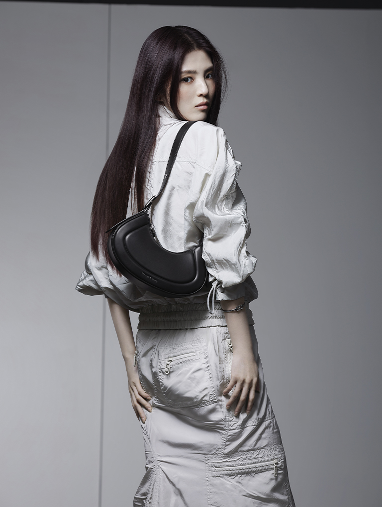 The curves and eye-catching structure of the Petra shoulder bag come together to create a modern, feminine aesthetic. This contemporary classic blends form and function admirably — its compact size and minimalist design makes it a versatile everyday bag that will pair well with virtually any outfit. Han So Hee shows how the Petra can instantly polish up a casual outfit by pairing its black iteration with a cool, street-chic look in monochromatic grey.