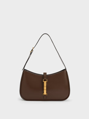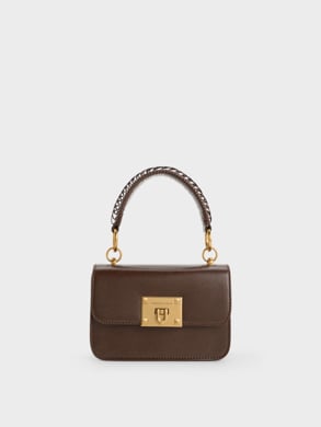 It is indeed possible for a minimalist bag to make a striking statement, as exemplified by our Rebel hobo bag and metallic turn-lock bag. Both pieces boast distinctive handles that set them apart from the crowd. The Rebel's strap is adorned with multiple decorative ring buckles, adding an edgy aesthetic to its simple design, while the metallic turn-lock bag's handle showcases an intricate braided pattern. Their rich brown finish is as versatile as other classic neutrals and will effortlessly integrate into your everyday wardrobe.