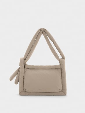 For long hours of travelling, maximise your comfort by staying snug and cosy with our puffy bags and padded shoes. The Errya quilted bag , with its pillow-like plushness, can double as a handy headrest during your journey. Meanwhile, the Romilly puffy sandals boast padded straps that will shield your feet from discomfort no matter how far you wander.