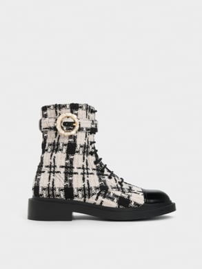 Elevate your winter style by embracing cosy textures. Statement pieces featuring patterned materials like shearling, tweed, and textured knit will add tactile flair to your travel outfit, creating a warm and elegant ensemble. This season, the timeless combination of white and camel makes a comeback, and you can stay on trend with iconic pieces like the Charlot bag or Gabine sneakers.