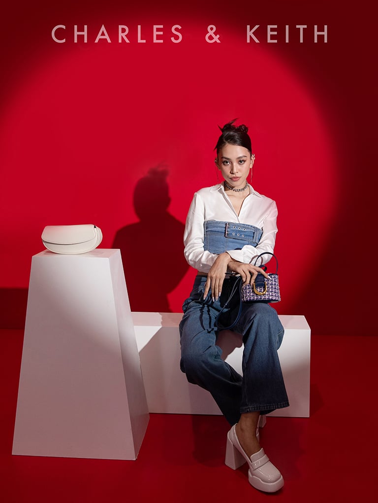 Một cuộc hẹn ngọt ngào cùng với Diễn viên Thúy Ngân trong tông màu trắng - hồng. Những item sang trọng và ngọt ngào từ Túi đeo vai Ridley chain link boxy và Giày cao gót mũi tròn đế trụ Lula patent chunky cùng tông màu, sẽ làm bừng sáng những ngày thu đông u ám, cho bạn thêm nhiều ý tưởng để tận hưởng những ngày cuối cùng của năm..